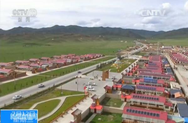这里是甘南藏族自治州碌曲县尕秀村,整齐的藏式民宅分布在国道213线两侧,屋顶的光伏发电板沐浴在阳光下。村民旦正加正在和妻子忙着洗菜,招呼客人。
