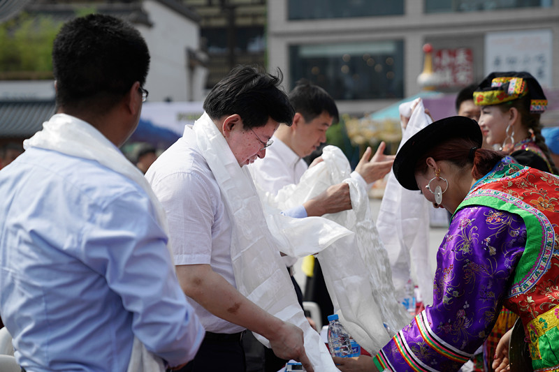 藏族风情民俗歌舞表演,吸引了近千人围观,就连老外也颇有兴致地观赏。