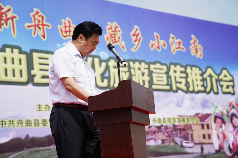 舟曲位于甘肃南部,地处西秦岭岷、迭山系与青藏高原边缘,东接陇南,西连迭部,北邻宕昌,南通四川九寨沟。舟曲是山的国度,水的世界,享誉陇上的国家4A级旅游景区拉尕山,沙滩国家森林公园、大峡沟国家森林公园;“陇上名山”国家2A级景区翠峰山、大海沟、大峡沟、巴寨沟、赛尔布等自然风景区。这里民俗独特,文化浓郁,一月多节会丰富多彩,博峪采花节、天干吉祥节、东山转灯踩福节、坪定跑马节、正月十九“迎婆婆”等各类民俗文化活动异彩纷呈;“多地舞”入列国家级非物质文化遗产名录,“元宵松棚楹联灯会”、“巴寨朝水节”、“舟曲酿酒”被列为甘肃省省级非物质文化遗产,“中国楹联文化县”创建成功,舟曲成为全国少数民族地区第二个、西北五省第一个荣获国家级楹联文化县的单位,“楹联文化”享誉全国。推介会上,舟曲县还发布了第四届舟曲民俗风情楹联文化节暨国学文化翠峰山高峰论坛及2017舟曲国际美食节,据悉,6月27-30日,国学文化翠峰山高峰论坛、国际美食节、“东山转灯节“申报国家非物质文化遗产专家论证会将在甘肃省舟曲县隆重举行。