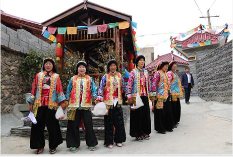 观摩团一行来到巴藏乡各皂坝生态文明小康村。硬化的村道、绿化的庭院、美化的田园,依山而建的村落错落有致,蜿蜒的村道修葺一新。沿着硬化路一路前行,形式多样的文化墙内容丰富、朴素实用,特别是把地方特有的民俗、宗教、服饰等文化元素展现其上,更是惟妙惟肖、亲切朴实。