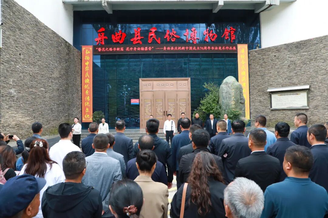 为热烈庆祝中华人民共和国成立76周年,9月29日,由中共舟曲县委宣传部、县文学艺术界联合会主办,县政协委员工作室、县美术家协会承办的“簪花之路书新篇·花开舟曲翰墨香”书法美术作品展,在峰迭新区民俗博物馆正式开展。县委书记安玉海出席并宣布展览开展,县委常委、宣传部部长包文文致辞,副县长谢静主持开展仪式。