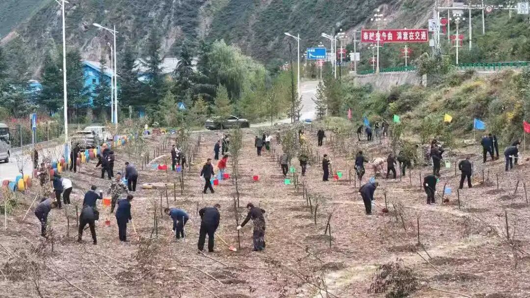 十月的舟曲,群山叠翠,林海涌浪。连日来,全县2025年秋季国土绿化暨全民义务植树活动火热进行。植树现场,处处都是忙碌的身影,全县党员干部群众相互协作、默契配合,挥锹铲土、扶植树苗、培实新土、提水浇灌,累计栽种刺槐、桃树、香花槐、石榴等苗木138694株,一排排树苗舒展身躯、随风摇曳,孕育着绿色发展的生机和活力。