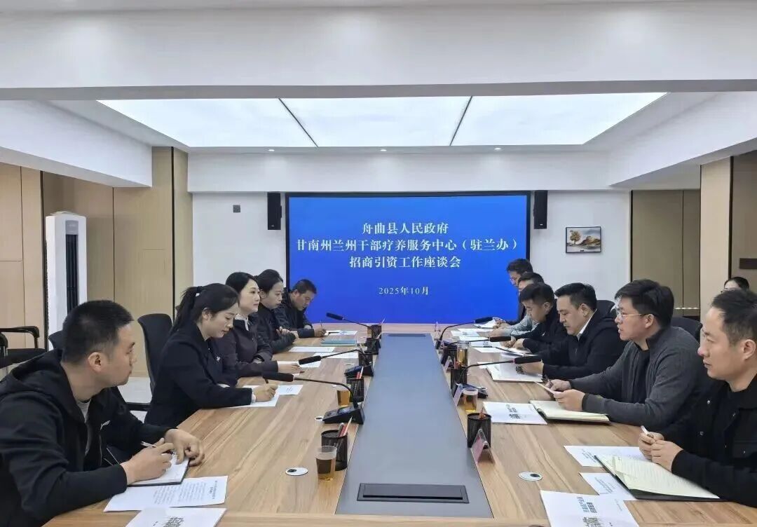 10月29日,舟曲县人民政府副县长谢静带领相关部门负责人到甘南州兰州干部疗养服务中心(驻兰办),召开招商引资工作座谈会,重点围绕资源对接、项目信息、服务保障等进行深入交流。