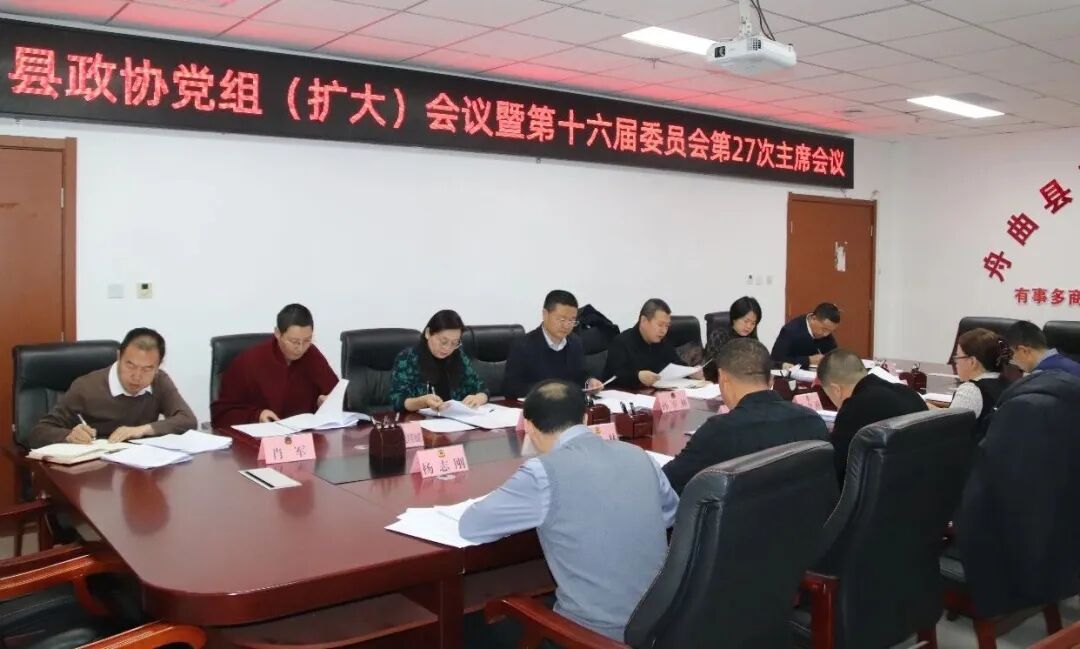 12月25日,县政协党组书记、主席孙军林主持召开县政协党组(扩大)会议暨十六届委员会第27次主席会议,传达学习习近平总书记对全国依法治国工作的重要指示精神、中央经济工作会议精神等,听取县政协十六届五次会议筹备情况汇报,审议有关议题,安排部署近期重点工作。