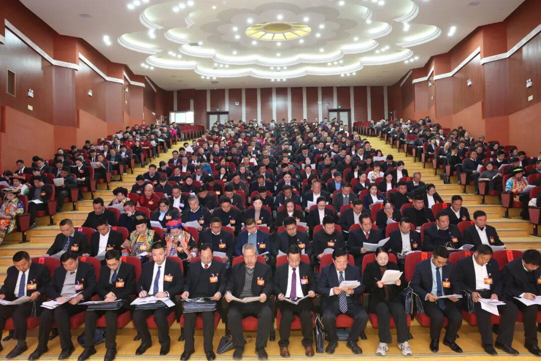 1月7日上午,舟曲县第十八届人民代表大会第五次会议在老城区人民会堂开幕。会场内,主席台帷幕正中国徽高悬、红旗鲜艳,气氛庄严而热烈。