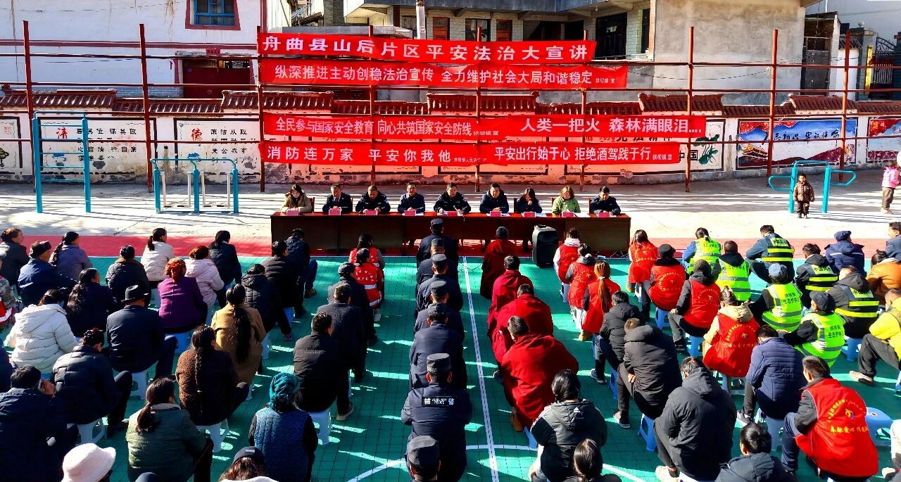 为深化主动创安创稳,回应群众法治需求。近日,舟曲县山后片区第二法治宣讲组,在拱坝镇拱玫操场、片片村广场开展平安法治大宣讲。副县长、县公安局党委书记、局长高旭光以“法治护航平安家园”为主题为当地干部群众、师生、民兵、护林员、僧侣代表等讲授法律知识,拉开多部门联合宣讲序幕。