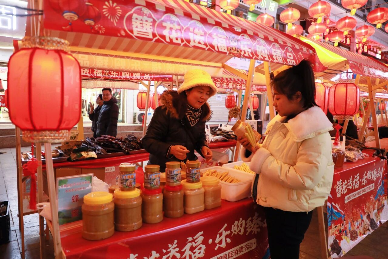不仅传统市场红火,今年县城西街还新设了“西街七点半·文化大集市”年货专场售卖点,本地花椒、土蜂蜜、山野菜、腊肉等乡土特产聚集于此,吸引了不少居民和游客前来选购。
