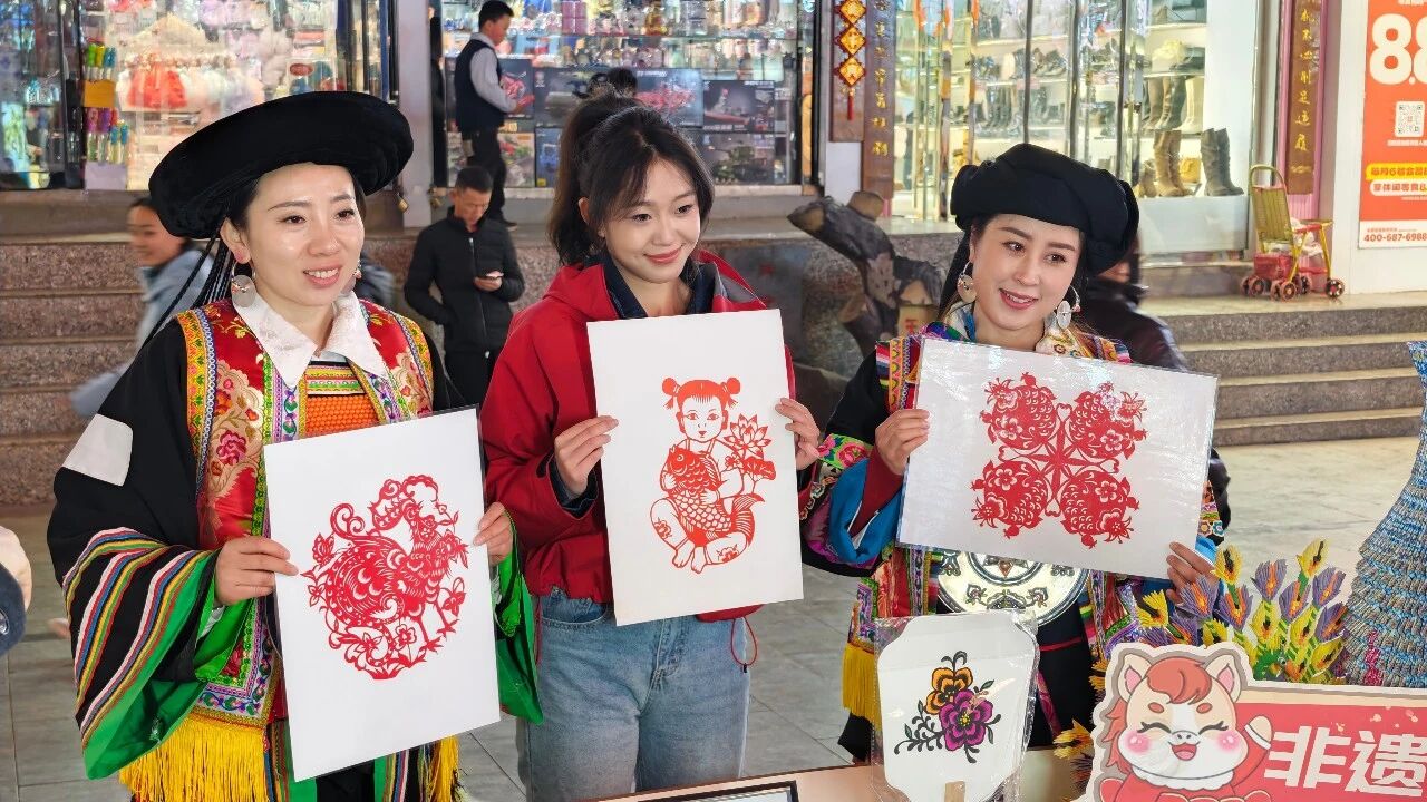 探访非遗街区,匠心传承、活态绽放。目光流转,一器一物见传承。舟曲藏族服饰静态陈列,色彩明艳、工艺精湛。嵌着珊瑚、缀着流苏、泛着银光的首饰、手镯、发簪等藏族银饰,考究精美、小巧玲珑。静睛而视,一针一线藏巧思。绣着各式花鸟草木等图案的荷包、鞋垫,以及独具舟曲韵味的绣花枕头、虎头帽,形态各异、琳琅满目,吸引着往来的游客驻足品赏、精选下单。剪纸技艺展示和现场制作体验也备受欢迎,从折纸到剪纸,颜色各异的纸张在双手的匠心独运间变幻造型、焕发光彩。融合传统技艺的各种物件,见证古老技艺在当代的活态传承,让文化根脉可感可触。