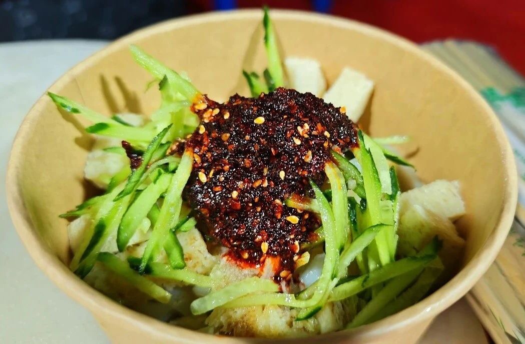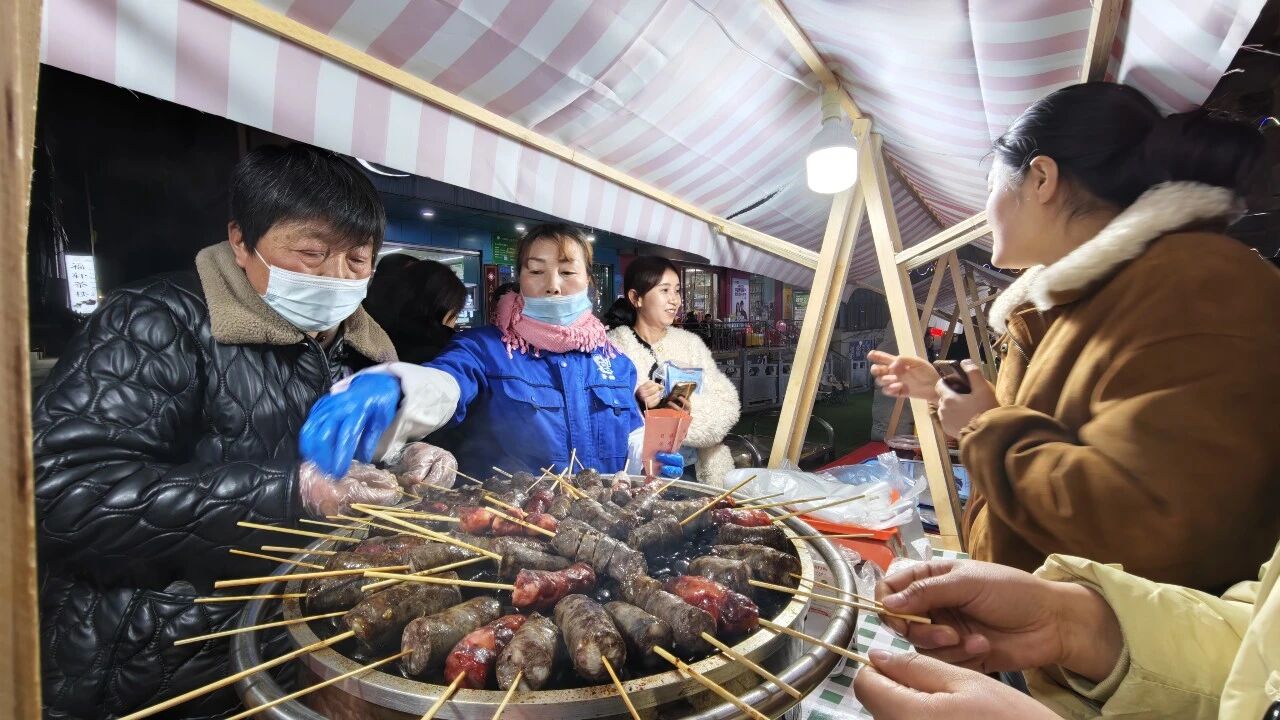 驻足美食街区,烟火袅袅、香气四溢。小吃摊位错落有致、食客盈门。手工制作腊肠随着不断升温的炭火滋滋作响、香味扑鼻,串在木质签子上的各式烤串,外焦里嫩、鲜香入味,浇上红油辣子、撒着青翠蒜苗的豌豆凉粉,酸辣可口、劲道入味的洋芋搅团,以及荞面煎饼、秘制卤味、酿皮子、麻辣粉等各种风味小吃、应有尽有,每一口都是自然馈赠与匠心烹制,满足游客的缤纷味蕾,唤醒心底的烟火乡愁。