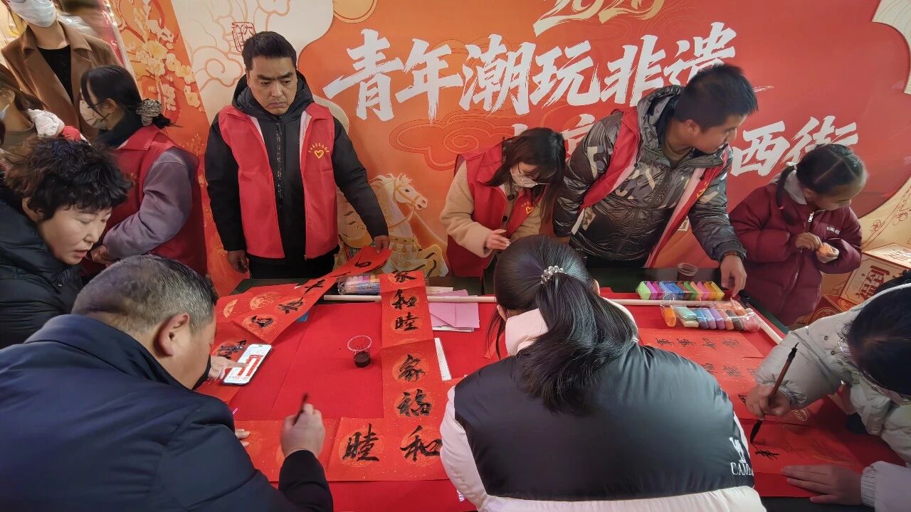徜徉阅享街区,书香氤氲、老少咸集。“童声朗朗诵诗韵”“冬夜轻诵·经典回响”等主题活动,让文字的力量跨越时空、浸染夜色,引来不少行人驻足聆听。“墨韵西街·春联送福”特色活动现场“福”气满盈,舟曲本土书法爱好者挥毫送“福”,红底黑体的花式福字随着笔尖的起承转合次第呈现,接过“福”字的群众笑容满面。“书香奇遇”趣味活动,用围观孩童此起彼伏的惊叹声、科学实验产生的小火花、故事会里跳动的文化脉搏,再次“扮靓”书香街角。