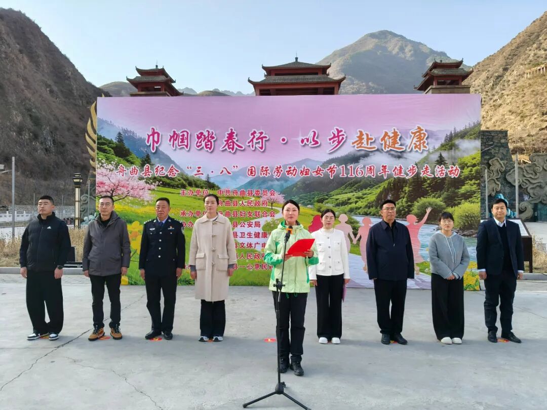 3月4日,舟曲县在大峡沟国家森林公园举行 “巾帼踏春行・以步赴健康” 健步走活动,庆祝第 116 个 “三八” 国际劳动妇女节。活动由县委、县政府主办,县妇联承办,200 余名妇女代表参加,副县长谢静出席活动并致辞。