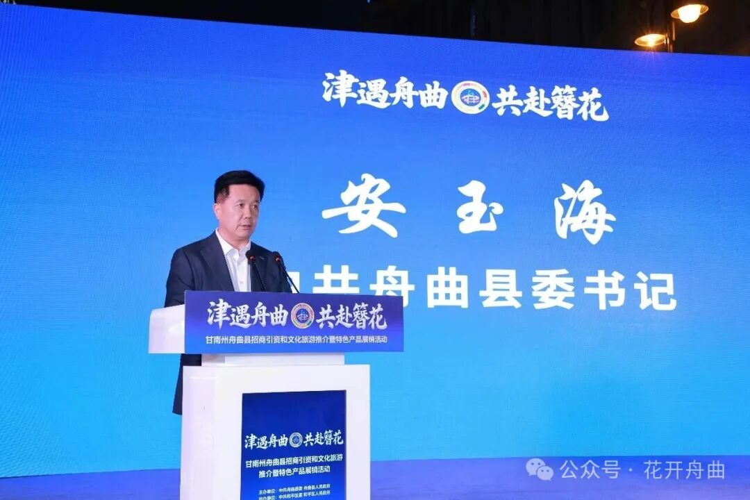 推介会上,安玉海代表舟曲县委、县政府对天津市和平区长期以来的倾力帮扶表示感谢。他表示,近年来,和平区始终以高度的政治担当和深厚的为民情怀,为舟曲提供了全方位、多层次的无私帮助和鼎力支持。一批批援派干部扎根基层、奉献舟曲,书写了情暖藏乡的生动实践。一个个产业项目落地见效、惠及民生,让舟曲群众的生活更加殷实。一次次消费帮扶、爱心捐助,为舟曲的教育医疗和乡村振兴注入强劲动能,跨越千里的津舟深情永远铭记、感恩于怀。舟曲带着藏乡江南的秀美风光、千年传承的非遗文化、绿色生态的特色产品和满满的合作诚意来到渤海之滨、魅力津城,以花为媒、以节会友,共同拓展合作空间、一起绘就发展蓝图,让舟曲与和平的山海真情成为东西部协作的典型样板。舟曲将始终牢记帮扶情谊,感恩奋进、实干担当,共同谱写津舟合作发展新篇章。