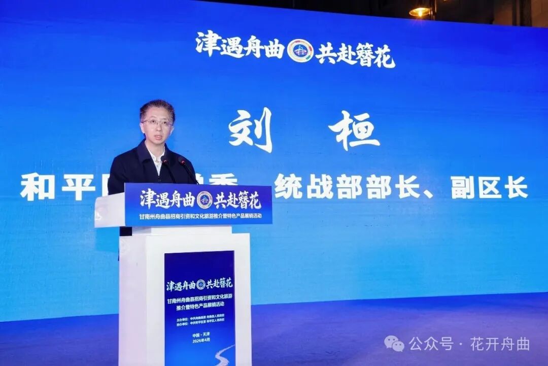 刘桓代表和平区委区政府向多年来关心支持舟曲县、和平区两地发展的各界人士表示感谢。他表示,舟曲生态秀美,资源富集,是一片承载着资源优势与发展机遇的沃土。和平区与舟曲县虽远隔千里,却有着深厚的帮扶情谊,自结对帮扶以来,一桩桩民生实事温暖民心,一次次协作凝聚合力。和平区将聚焦舟曲所需、立足和平所能,在产业招商、文旅融合、人才培育、资源共享等方面持续深化务实合作,推动帮扶工作从“输血式”向“造血式”转变,进一步激活两地协同发展新动能,讲好新时代津舟协作新故事。