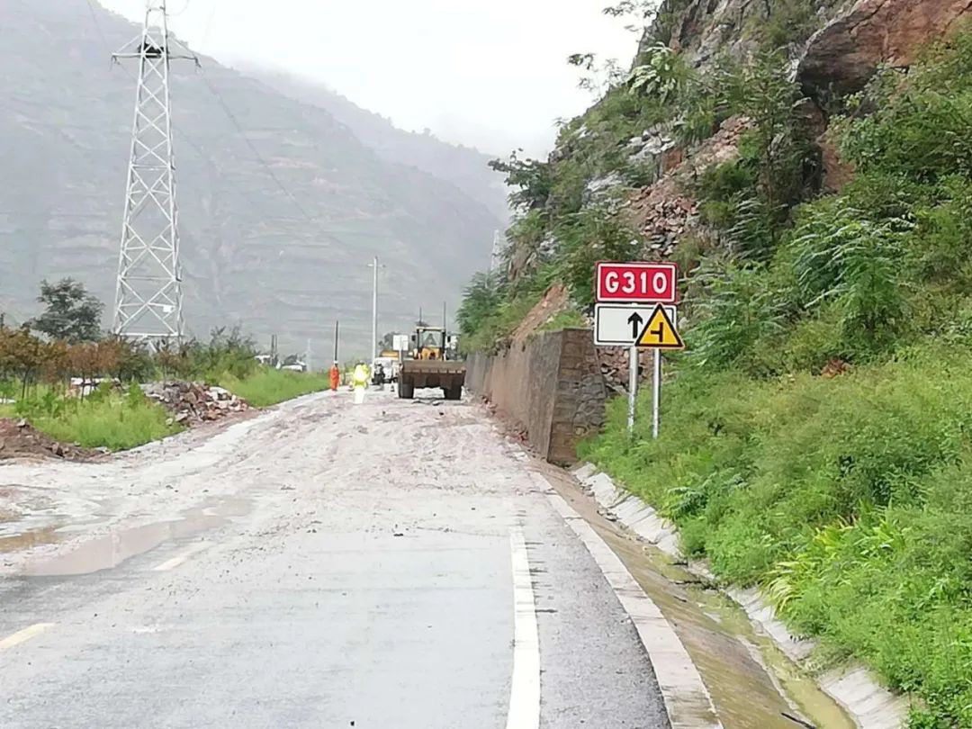 8月15日夜间至16日白天,持续性的降雨致G310线大雾弥漫,能见度低。经过10多个小时的抢修,16日18时15分抢修完毕交通恢复双向通行。