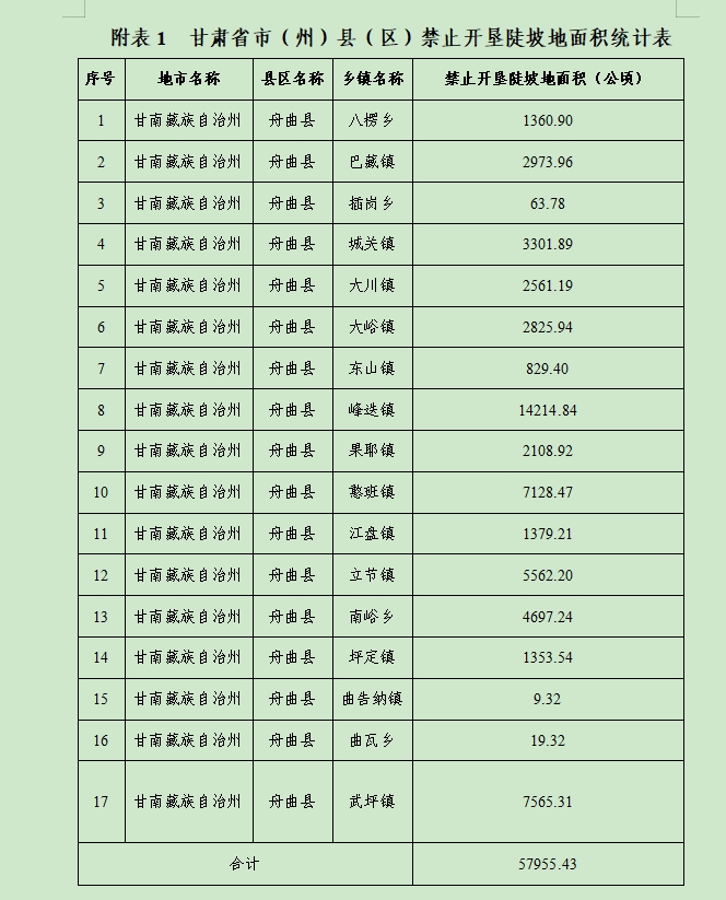 附件:1.舟曲县禁止开垦陡坡地面积统计表