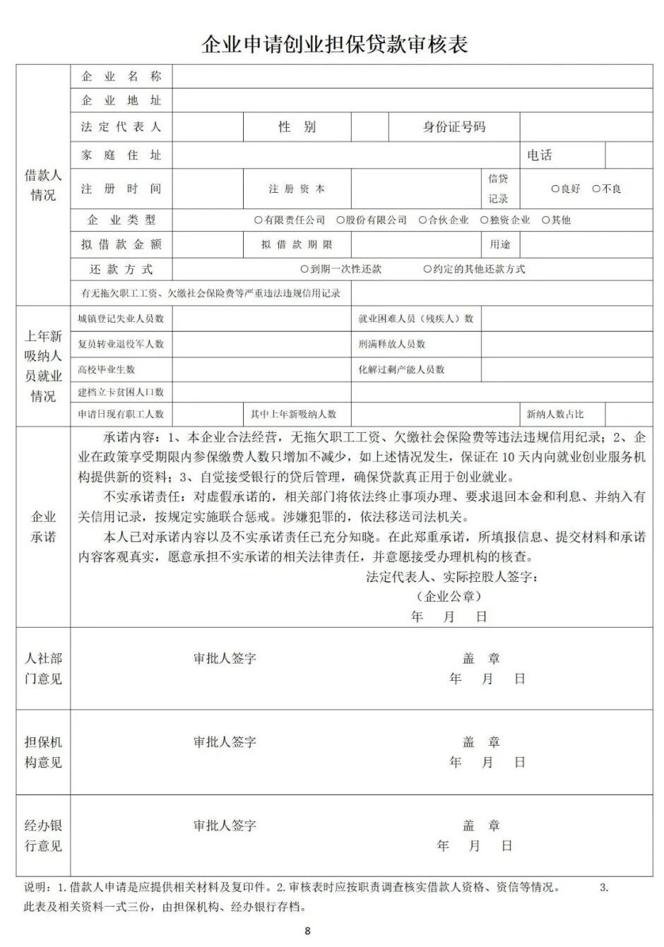 3、人社局对申请资料复审合格后,将符合贷款身份条件的人员推送给贷款经办银行、担保公司。经办银行和担保公司再次对申请人进行征信、经营实体、经营规模、经营状况、还款能力的审查和担保物的评估,对符合条件的给予贷款扶持。