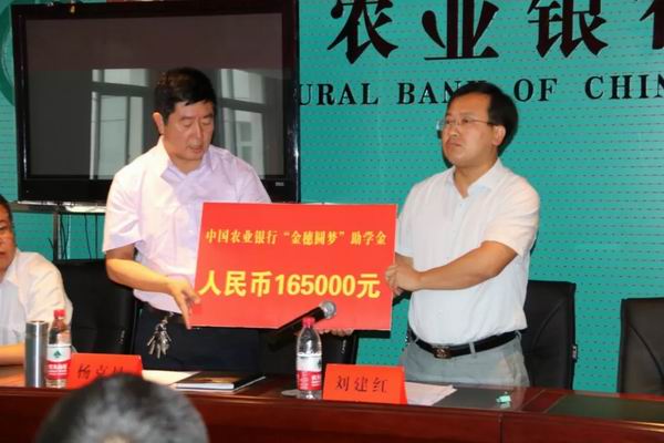 9月14日,由中国青少年发展基金会和中国农业银行联合发起的深度贫困地区大学生助学活动,中国农业银行“金穗圆梦”深度贫困地区大学生助学活动——助学金发放仪式在县农行会议中心举行。为33名符合条件的贫困大学生,每人一次性资助5000元,共计165000元。