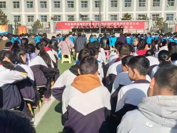 11月22日,县委常委、政法委书记、县禁毒委副主任王宏钟深入峰迭新区中学作了“健康生活、青春无毒”为主题的青少年毒品预防教育专题讲座。县禁毒办、县公安局峰迭派出所负责人、法制副校长、禁毒校外辅导员以及峰迭新区中学全体师生3400余人聆听了此次讲座。全体师生参加了党旗下的禁毒宣誓仪式,县禁毒办工作人员为学生们发放了禁毒宣传资料。通过讲座,进一步增强了学生们的法制观念和自我保护意识,牢固树立了抵御毒品侵害的思想防线,同学们纷纷表示要积极参加健康向上的文娱活动,摒弃不良的生活习惯,用健康的行为抵御毒品的侵害,踊跃参加禁毒活动,带头做防毒拒毒的标杆和榜样。