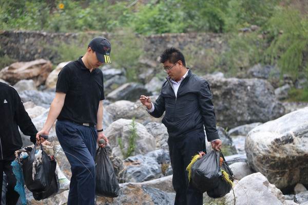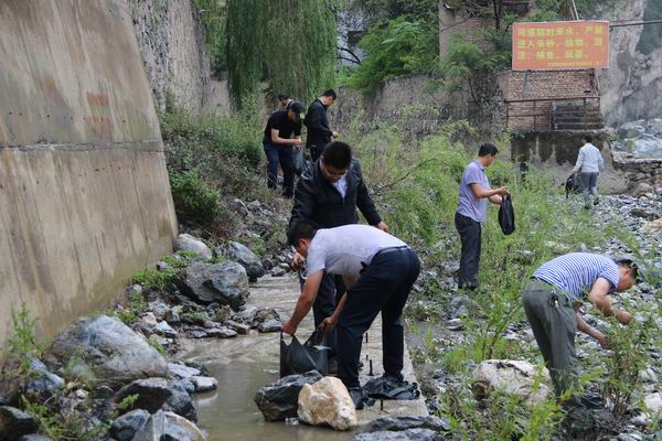 6月20日,顶着连绵细雨,县政府在家领导和政府办全体职工,在环境卫生整治责任区域内捡拾垃圾。