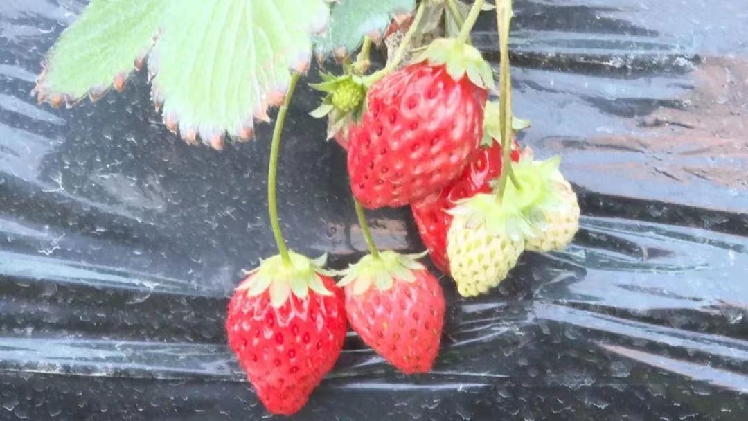 走进草莓种植温室大棚,一株株草莓苗整齐排列,郁郁葱葱、长势喜人,一颗颗色泽鲜艳的草莓在绿叶映衬下分外抢眼,令人垂涎欲滴,种植户忙着管护秧苗,采摘成熟的草莓。