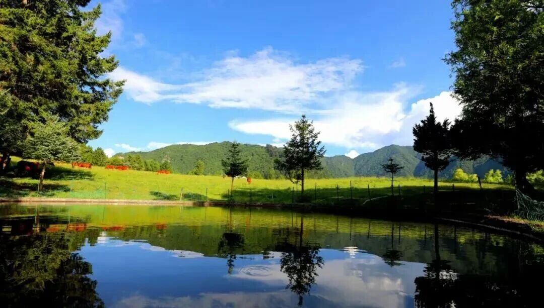 更有拉尕山巅,云海翻腾若金浪;三生三世,帧帧入画醉心房。羊布雪山融九溪,润得千峰凝翠;达玛花谷绽七彩,染就遍野芬芳。博峪采花,妇簪露蕊,翩跹承古俗;东山转灯,阵映星河,巧手传非遗。大峪香杭,古杨神话,达玛情长,驻足唏嘘。振衣此间,顿忘尘俗之扰,唯感天地之宽。