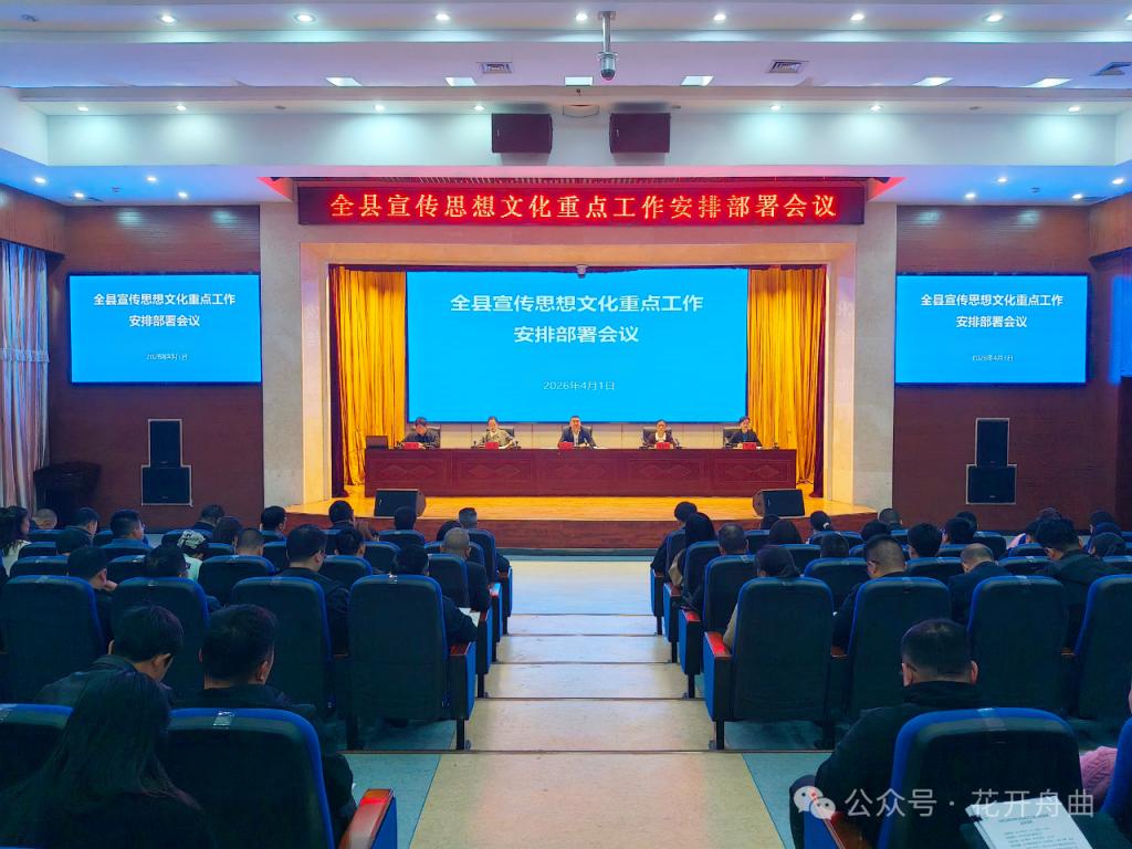 4月1日,舟曲县召开全县宣传思想文化重点工作安排部署会议,会上传达学习了全国、全省、全州宣传部长会议精神,县委书记安玉海对全县宣传思想文化工作和对全县网信工作的批示,县委副书记、县长王海青对全县文体广电和旅游工作的批示,会议对2026年网信、精神文明建设、文化旅游和媒体融合工作进行了安排。县委常委、宣传部部长包文文主持会议并讲话。