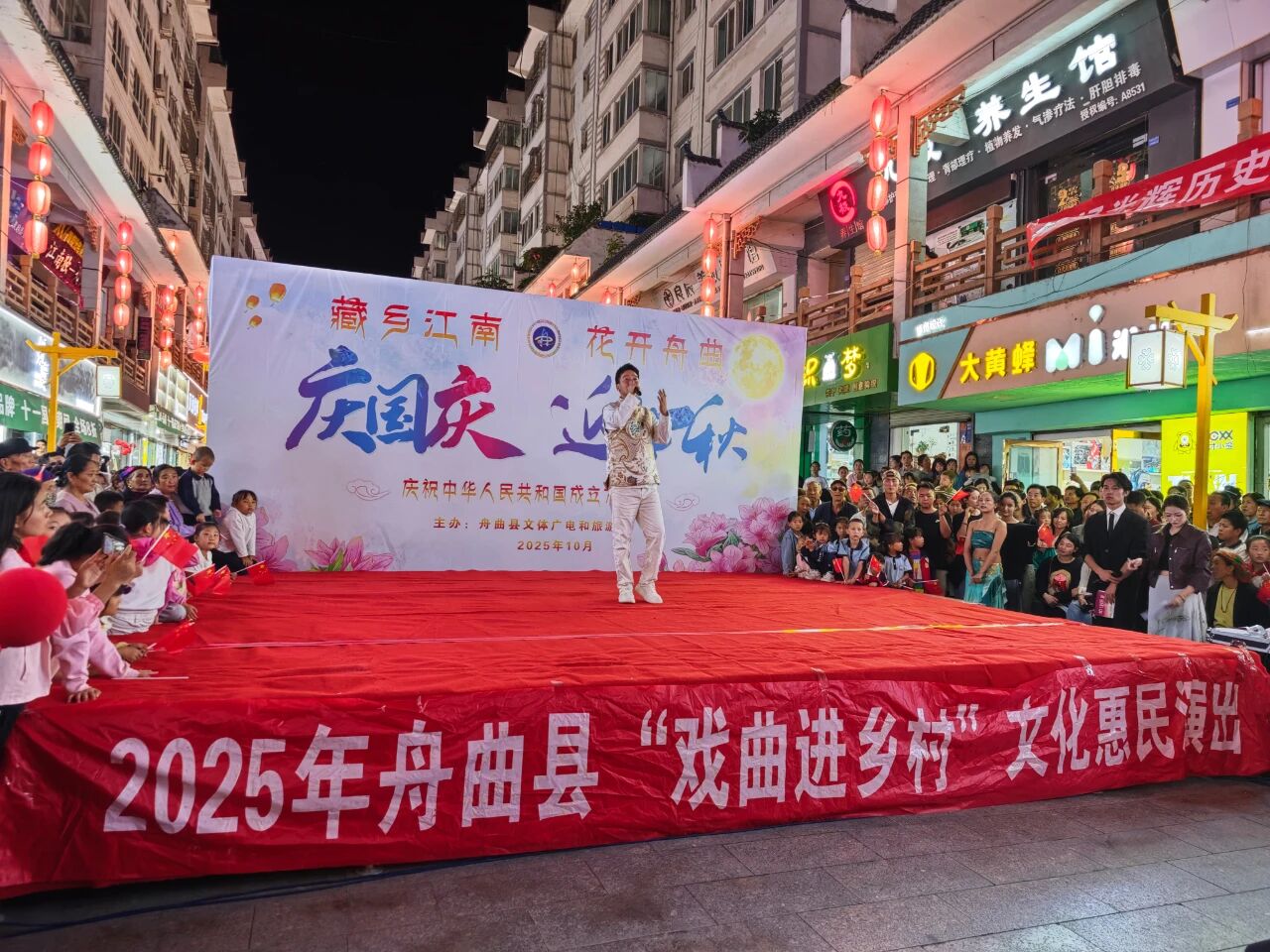 金秋十月,丹桂溢香。在祖国76华诞与中秋佳节“双节”同庆的美好时节,9月30日,由舟曲县文体广电和旅游局主办的“国庆乐舟曲·山水共欢歌”迎国庆歌舞演艺活动,在舟曲楹联文化街拉开首场“庆国庆·迎中秋”音乐会帷幕,为现场观众献上了一场融民族风情与家国情怀于一体的文化盛宴。