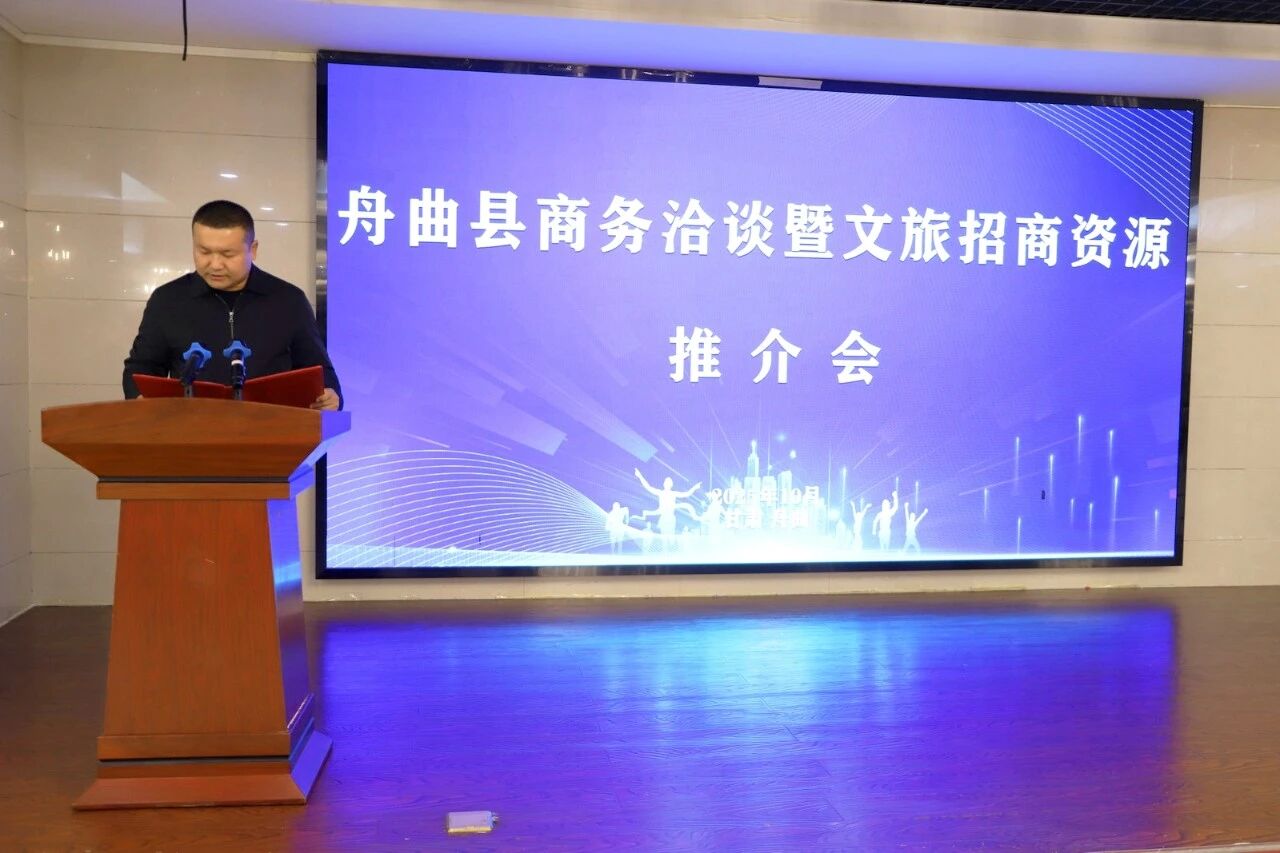 10月30日,舟曲县召开商务洽谈暨文旅招商资源推介会。县委常委、副县长华湃致辞,县委常委、宣传部部长包文文主持会议。协创云享科技(深圳)有限公司、肆拾玖坊总部、联想存储、think plus存储的合作方、华夏水务(北京)有限公司甘肃省团队等省内外企业代表,县直相关单位负责人、县相关企业代表参加会议。