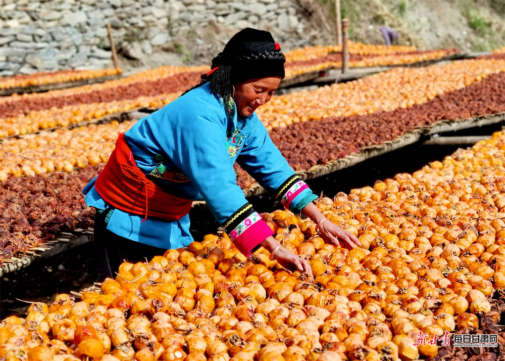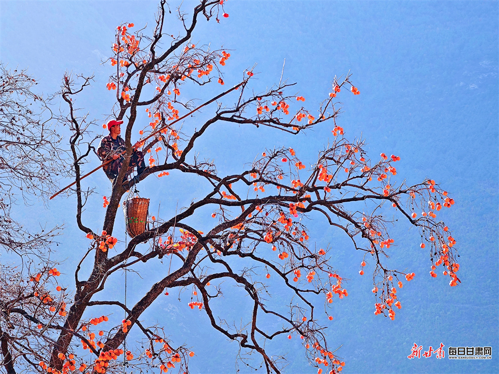 阳光下,红彤彤的柿子在枝头随风轻晃,果肉饱满透亮,不仅成为山间一道亮眼的风景线,更承载着当地群众的丰收喜悦。不少村民忙着采摘柿子,或晾晒成柿饼,或留作冬日鲜果,处处洋溢着初冬时节的闲适与温馨,也吸引着游人驻足观赏,定格这份独属于舟曲的冬日限定美好。