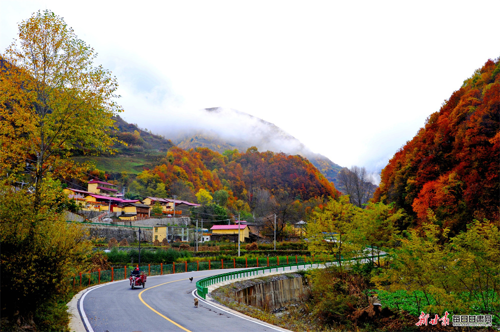 初冬时节,甘南舟曲大峪国家森林公园仍浸染着浓得化不开的秋意。沿着蜿蜒的“簪花之路”穿行其间,漫山林木褪去葱茏,换上橙红、金黄、深褐的斑斓盛装,与山间缭绕的薄雾、澄澈的溪流相映成趣,勾勒出一幅层次分明的初冬秋景图。