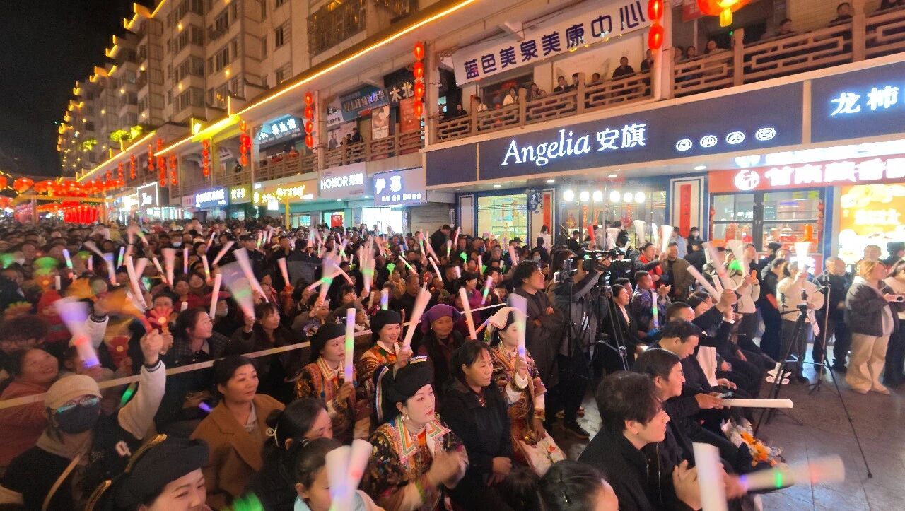 华灯映西街,欢歌闹新春。2月26日,“冬游舟曲 簪花迎春”系列活动之“西街七点半·文化大集市”乡村明星演唱会八楞专场,在西街楹联文化步行街盛大开演。整场演出汇聚27个精品节目,以乡音为媒、以文化为桥,全方位展现八楞乡的人文风情与精神风貌,为现场及云端观众献上了一场独具特色的视听盛宴。同时,元宵松棚楹联灯会今日正式启灯,为即将到来的元宵佳节增添浓郁氛围,充分彰显“中国楹联文化县”的独特魅力。