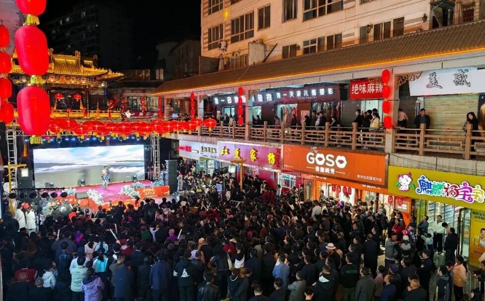 当晚的西街灯火璀璨、人声鼎沸,楹联长廊流光溢彩,演艺街区座无虚席,随着悠扬的旋律响起,演唱会正式拉开帷幕。一曲《我的故乡》深情款款,唱出了游子对故土的眷恋,紧接着《谁的帐篷》旋律一转,草原的辽阔与豪迈扑面而来,瞬间点燃现场氛围。