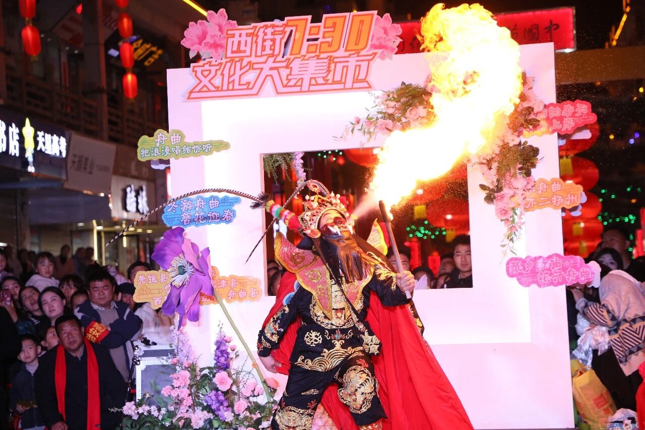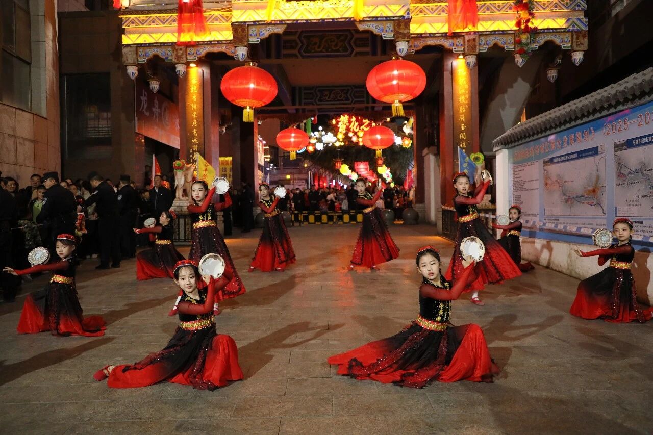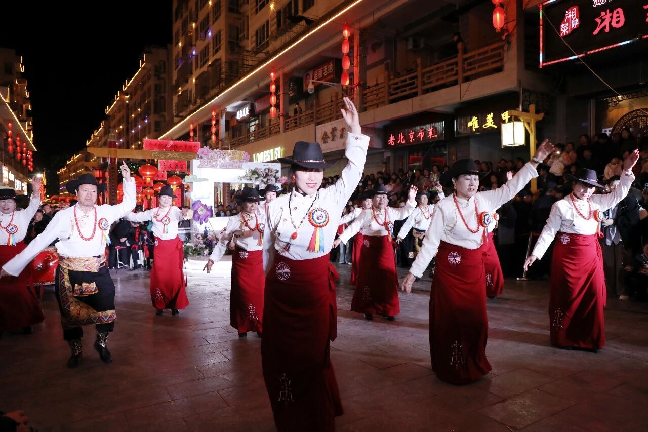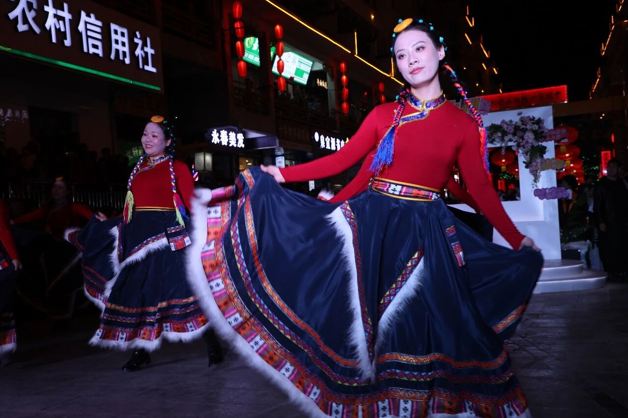 灯火璀璨映西街,民俗欢歌闹初春。3月1日,“冬游舟曲 簪花迎春”系列活动之“西街七点半”峰迭专场,在中国第一楹联文化街廊精彩上演。峰迭镇干部群众与本土艺术家齐聚一堂,以歌舞、器乐、非遗展演等多元艺术形式,尽显藏乡风情与民俗魅力,为市民及游客呈上一场沉浸式视听盛宴,有力激活舟曲冬春文旅市场新动能。
