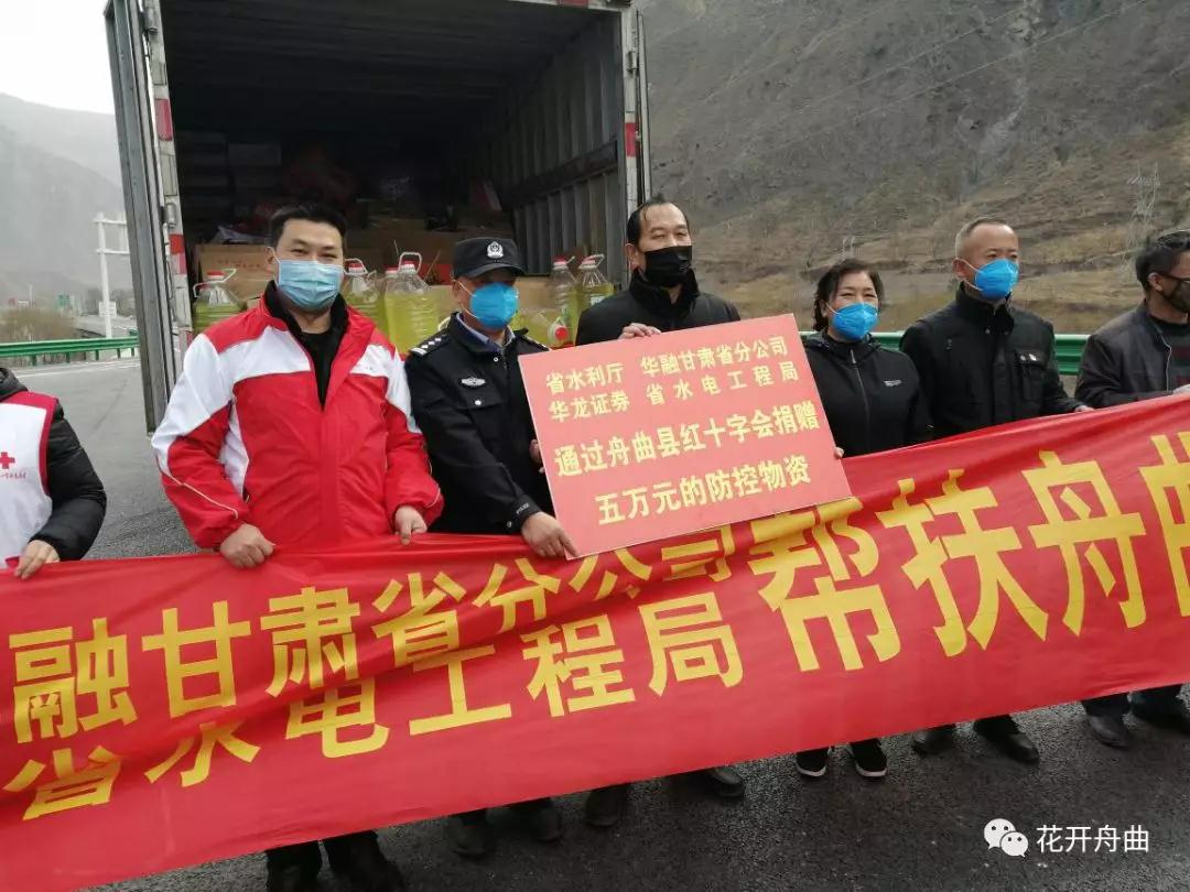 2月14日下午,舟曲县红十字会接受了省水利厅、华融甘肃省分公司、华龙证券、省水电工程局等省直帮扶单位捐赠的400个一次性医用口罩、355升75%医用酒精、10台背负式充电超低容量喷雾器、2台手动式喷雾器、1060升消毒液,170箱方便面、30桶食用油、400斤面粉、400斤大米、120个取暖宝、120双橡胶手套等价值5万元左右的疫情防控物资,用于疫情防控工作,并举行了捐赠仪式。县红十字会将陆续收到的捐款物资上报县联防联控领导小组,通过防空办领导小组指定,及时移交,用于我县疫情防控一线去。