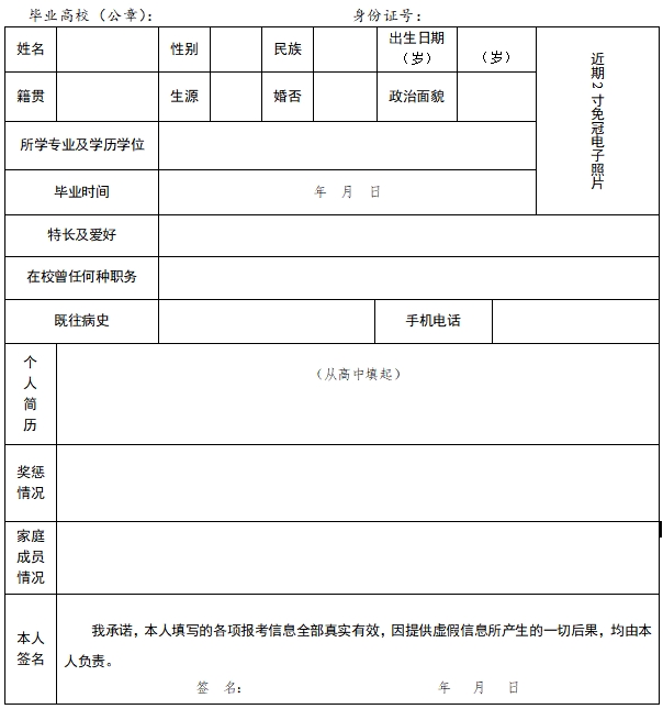 甘肃省2024年选调应届优秀大学毕业生报名推荐登记表