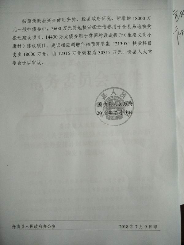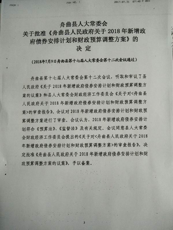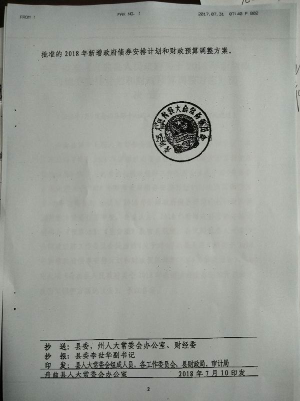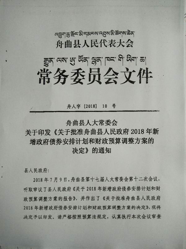 关于2018年新增政府债券安排计划和财政预算调整方案的报告