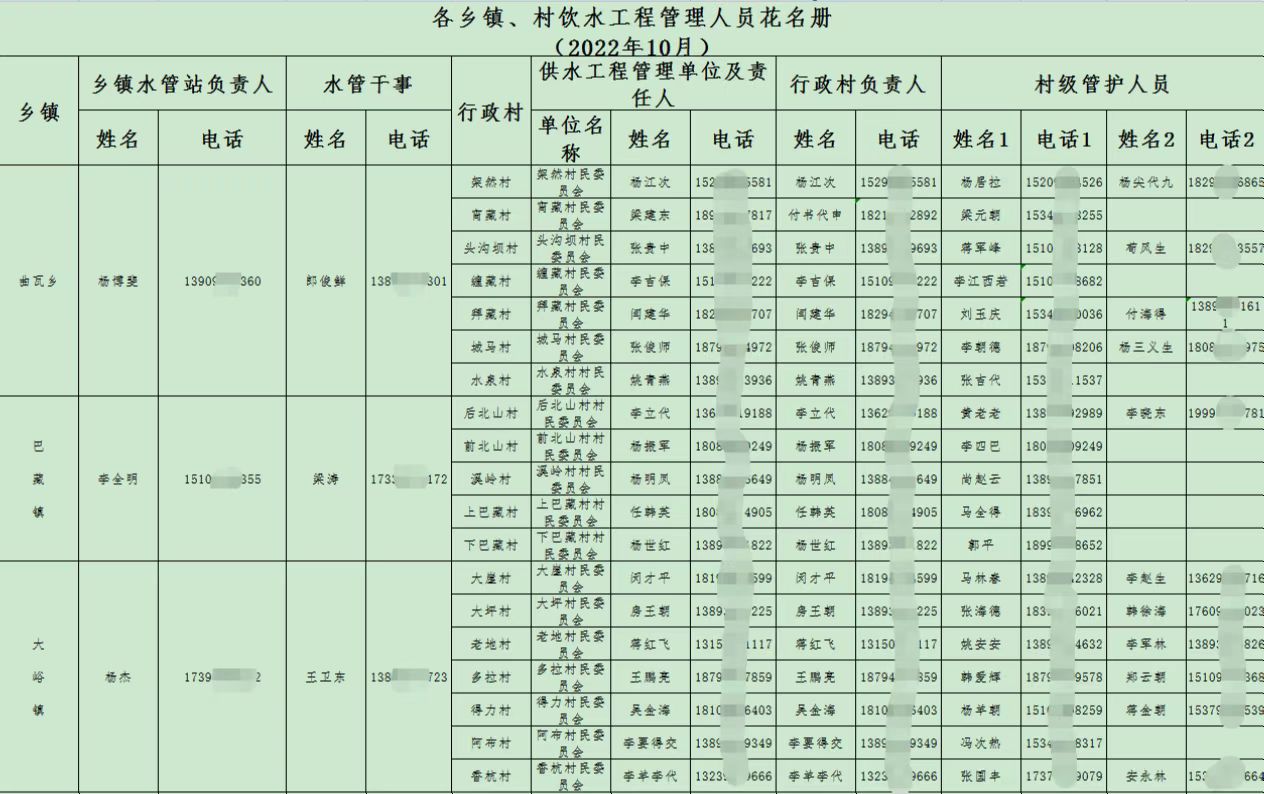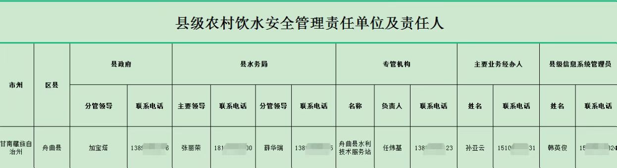 舟曲县县级农村饮水安全落实管理责任单位及责任人 乡镇村组饮水工程管理人员名单公示 |