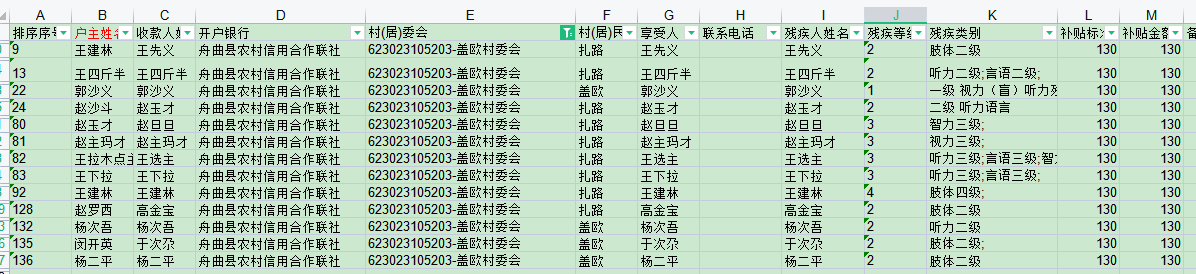 曲告纳镇盖欧村2025年10月残疾补贴花名册