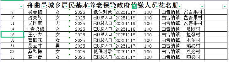 舟曲县曲告纳镇养老金政府代缴人员花名册