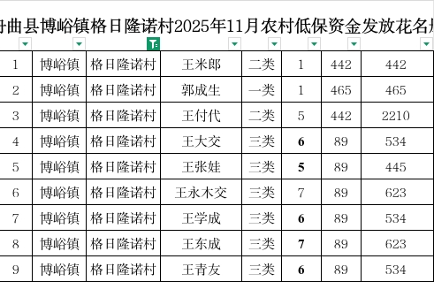 舟曲县博峪镇格日隆诺村2025年11月农村低保资金发放花名册