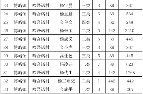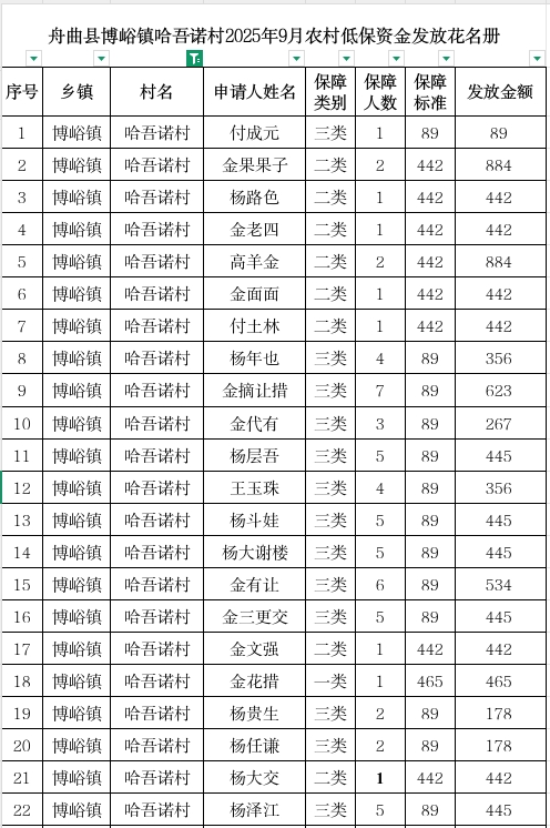 博峪镇哈吾诺村2025年9月农村低保发放花名册