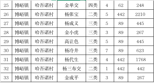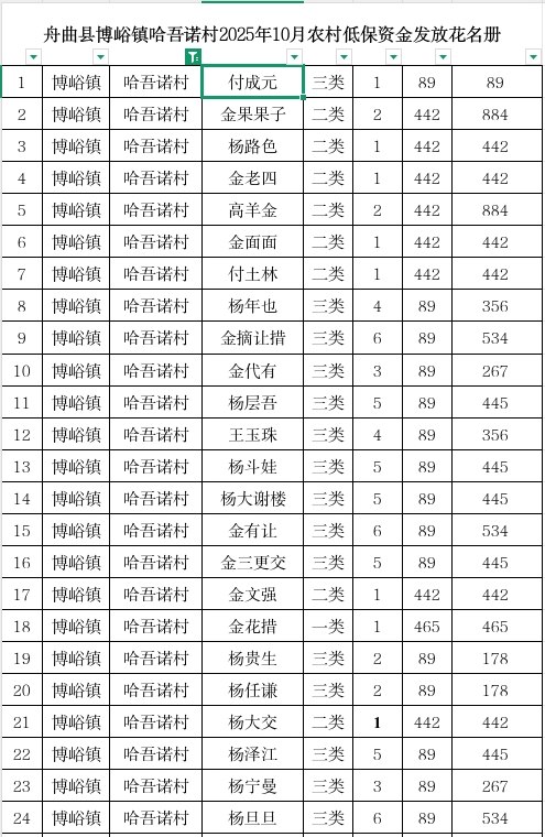 舟曲县博峪镇哈吾诺村2025年10月农村低保资金发放花名册