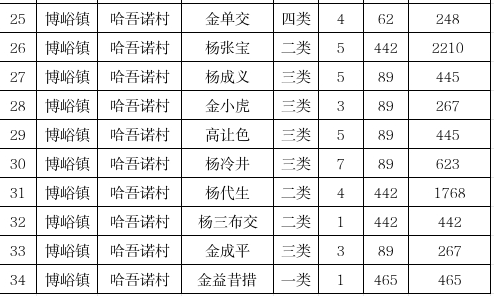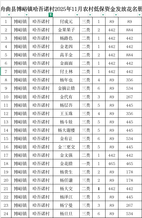 舟曲县博峪镇哈吾诺村2025年11月农村低保资金发放花名册