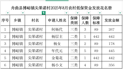 博峪镇尖果诺村2025年8月农村低保发放花名册