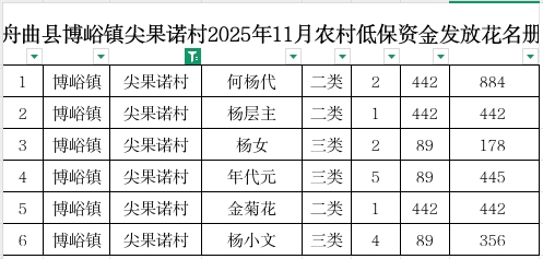 舟曲县博峪镇尖果诺村2025年11月农村低保资金发放花名册