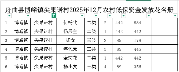 舟曲县博峪镇尖果诺村2025年12月农村低保资金发放花名册