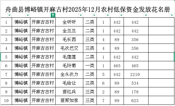 舟曲县博峪镇开麻古村2025年12月农村低保资金发放花名册