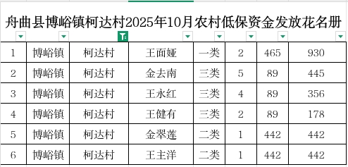 舟曲县博峪镇柯达村2025年10月农村低保资金发放花名册