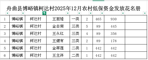舟曲县博峪镇柯达村2025年12月农村低保资金发放花名册
