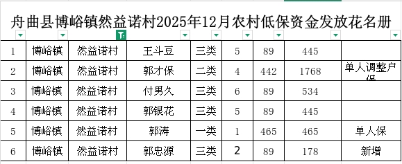 舟曲县博峪镇然益诺村2025年12月农村低保资金发放花名册